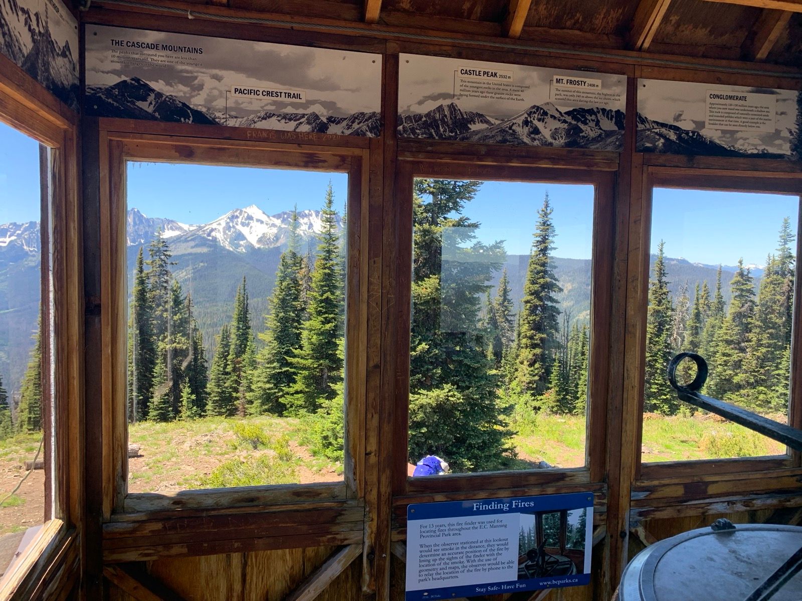 Windy Joe is a cool old fire lookout station on top of a hill. It was a nice hike, but there are many, many logs across the paths and navigating them with a backpack is a challenge. It was also hot hitting 35c around midday according to our thermometer.
