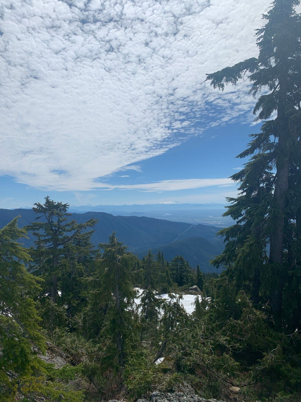 On Sunday I did Black Mountain from the Cypress parking lot. A shorter hike with my sore legs was most welcome. There were some patches of snow in shaded areas, but spikes weren't needed and it was mostly clear. On the top of Black Mountain there was no snow.