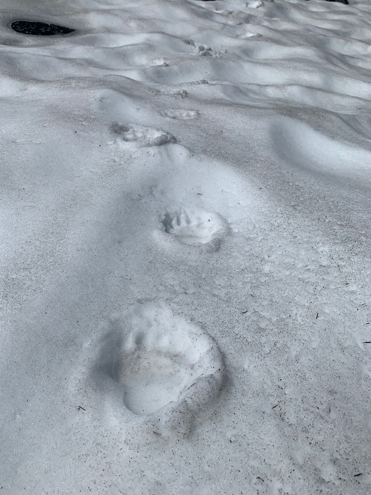 But I wasn't alone. With clear and recent bear footprints in the snow and the mud. Not surprising given the number of blueberry bushes that will be perfect bear food soon.