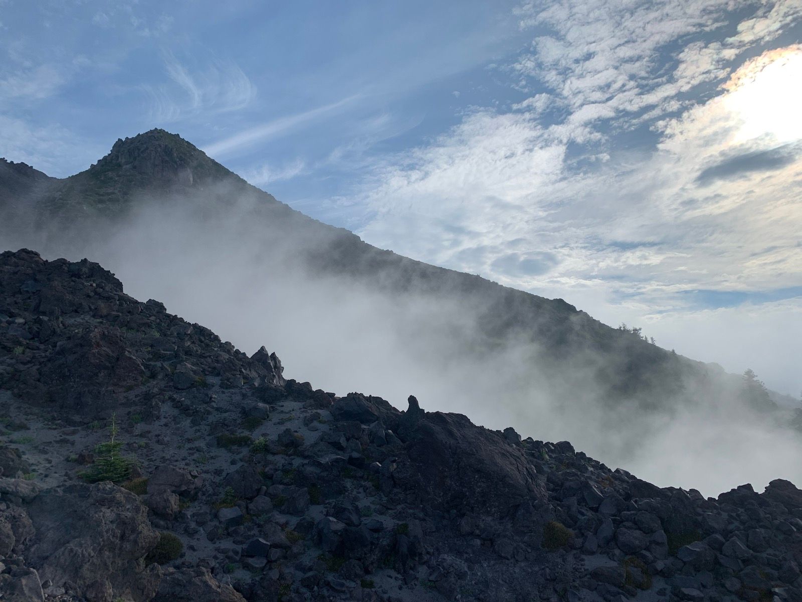 After an hour of that you hit a steep boulder field full of lava rock. It's a real maze with no clear path so you just have to figure it out up the steep path. After an hour of that you've got the final leg which mostly ash and gravel. The last couple of hundred metres is so hard, one step forward, half a step back.