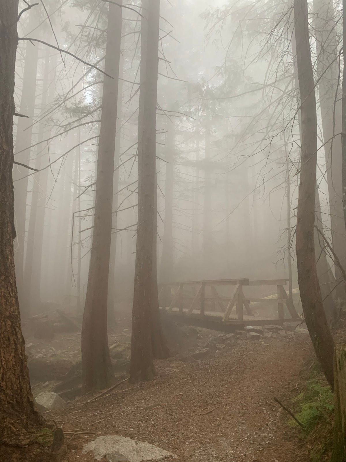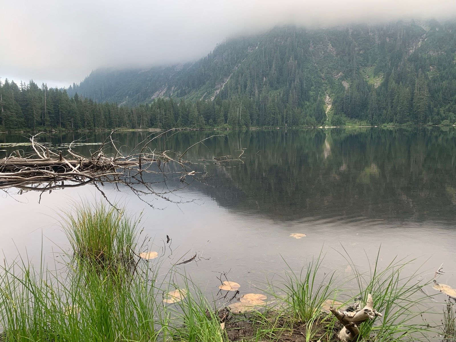 It was an overcast day and heading up from Deep Cove I went from patchy sun, into deep cloud, into sun, into deep cloud and ended up at an overcast remote lake. I've all but the last 5km or so of this trail before and knew what to expect, until I hit that last 5km.
